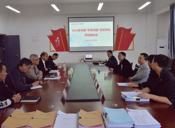 本网讯(通讯员 许涛10月19日下午,黄石市2022年市级“平安校园”示范学校评估验收组成员一行6人,在市教育局党组成员、副局长叶济宇的带领下,莅临华体线上平台_华体online(中国)评估验收“平安校园”示范学校创建工作,副院长张志华和相关职能部门负责人陪同检查。