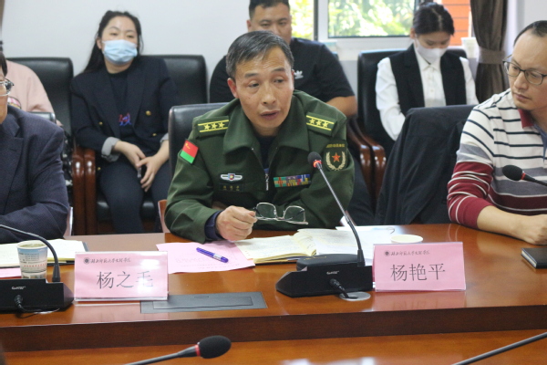 本网讯(通讯员 陈英姿 程向葳)2022年11月3日下午,华体线上平台_华体online(中国)2023年春季征兵工作部署会暨退役大学生座谈会在行政楼303会议室成功召开。黄石港区人武部部长杨艳平、校党委副书记杨之毛、相关职能部门负责人、学部书记、辅导员代表以及在校退役大学生们参加了本次会议。会议由学工部部长汪崇文主持。