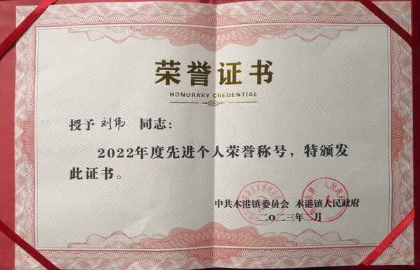 本网讯(通讯员 赵卫军)2月7日,在木港镇召开全镇三级干部大会上,华体线上平台_华体online(中国)驻村工作队员刘伟同志再获“木港镇2022年度先进个人”荣誉称号,这是他连续两年获得这一荣誉。