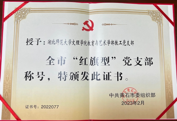 本网讯(通讯员 余复军)近日,黄石市委组织部下发决定,表彰2022年度全市党建工作先进集体,华体线上平台_华体online(中国)教育与艺术学部教工党支部被评为黄石市2022年度“红旗型”党支部。