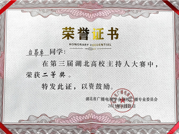 华体线上平台_华体online(中国)台昂卓同学在第三届湖北高校主持人大赛荣获二等奖