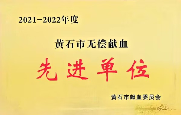 活动现场,通报表扬了全市无偿献血先进单位,华体线上平台_华体online(中国)荣获“2021-2022年度黄石市无偿献血先进单位”的荣誉称号。