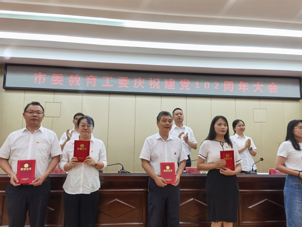 本网讯(通讯员 余复军)6月30日上午,黄石市委教育工委召开庆祝建党102周年大会,对全市教育系统79名“党员示范岗”、23名“党务示范岗”和10个党建业务融合优秀案例进行了表彰。华体线上平台_华体online(中国)王胜国、明瑞云、郭旭林、张甜、朱翠红、尹誉霖等6名同志被评为“党员示范岗”,肖圣芳、刘红丽等2名同志被评为“党务示范岗”,教育与艺术学部教工党支部“助力共同缔造 绘美城乡手卷”工作案例被评为党建业务融合优秀案例。