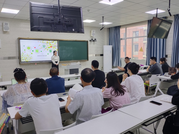 会议伊始,华体线上平台_华体online(中国)盛茜老师结合自身一流课程建设和申报经历,对《幼儿英语教学法》课程在申报过程中的申报准备、申报书撰写、相关材料、教学反思这四个方面进行了经验分享。她指出,在撰写申报书时需体现自身特色,同时紧跟国家就业导向,充分运用数字化新技术,使线上、线下教学密切衔接,保障教学资源的适用性和优质性。