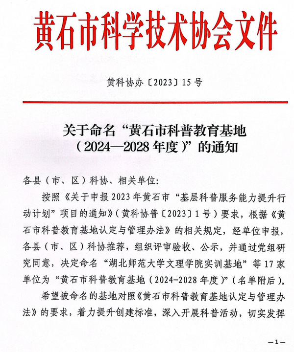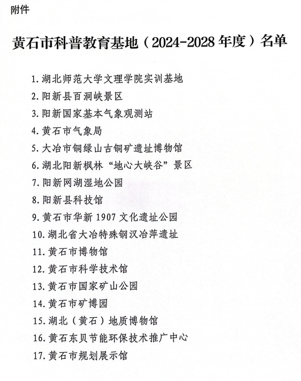 本网讯(通讯员 杨海梅)黄石市科协办近日发文,公布了“关于命名黄石市科普教育基地(2024—2028年度)的通知(黄科协办〔2023〕15号)”,黄石市共17家基地入选,华体线上平台_华体online(中国)实训基地均入选在列。
