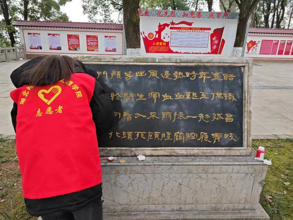 受先烈精神的感召,华体线上平台_华体online(中国)“畅游小队”寒假社会实践团队赴湖北省恩施市来凤县烈士陵园开展了“‘描红’吐翠风光现,烽烟史里动肝肠”实践活动。