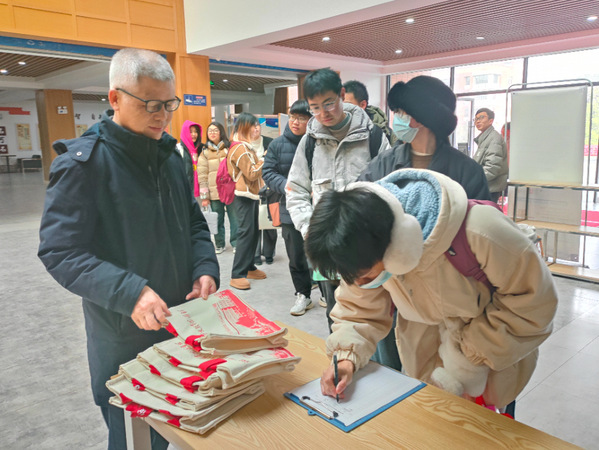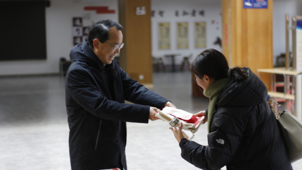 “入馆有礼”,上午8点,学子们便在图书馆门口排队等候入馆,借阅图书、查阅资料、复习备考。张志华、王胜国为入馆的前三十名读者赠送了图书馆定制礼品一份,并对同学们表达了新学期的祝福,并希望华体线上平台_华体online(中国)广大师生可以常走进图书馆,与圣贤为伍、与经典为伴、与智慧同行。