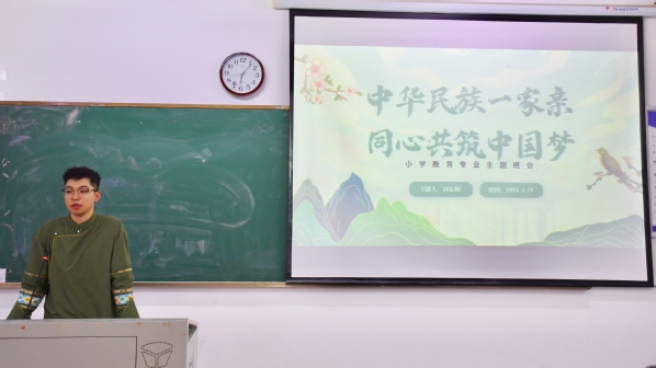 本网讯(图 黄依娜 文 翁典典)共绘同心圆,同筑中国梦。4月17日晚,华体线上平台_华体online(中国)教育与艺术学部召开“中华民族一家亲,同心共筑中国梦”主题班会。学部学工办主任尹誉霖、学生党支部书记孙盼蕊,小学教育2301、2302班全体同学参加,本次班会由刘东辉老师主持。