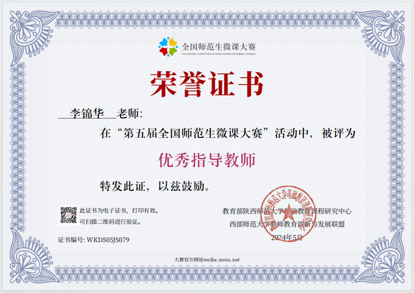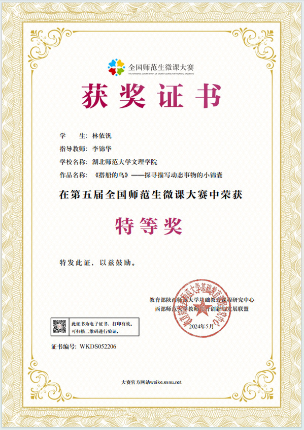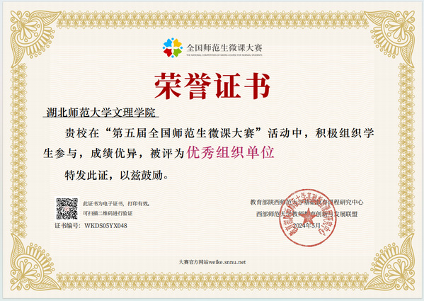 本网讯(通讯员 黄蓓佳)近日,第五届全国师范生微课大赛获奖名单公布。华体线上平台_华体online(中国)选拔推荐的微课参赛作品获得佳绩,荣获特等奖1个、一等奖1个、二等奖8个、优秀奖5个,华体线上平台_华体online(中国)荣获“优秀组织单位”,教育与艺术学部李锦华荣获“优秀指导教师”称号。