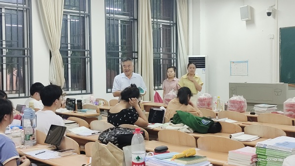 本网讯(通讯员 杨静)为鼓励留校备考研学子坚定目标、缓解压力、增强信心,保障做好留校学生的安全、管理和服务,7月10日下午,经济与管理学部主任商树松,副书记罗铭带领学部老师前往教学楼考研自习室看望慰问学部2021级考研学子,为他们送去清凉与力量。