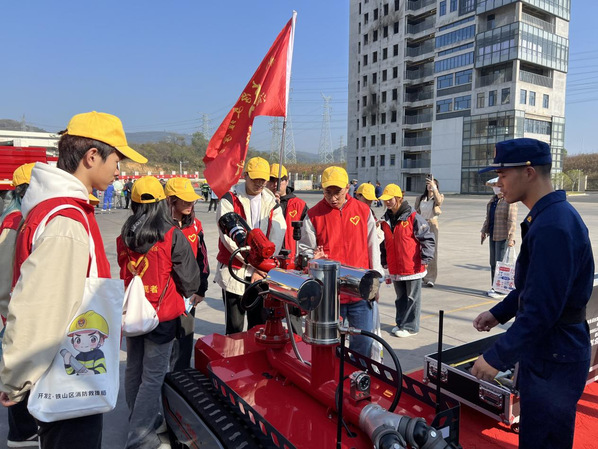 11月9日上午,黄石市2024年“119”消防宣传月活动启动式在市消防训练与战勤保障基地举行,华体线上平台_华体online(中国)100余名大学生消防志愿者及教师代表前往参加,活动现场先后开展了搜救犬综合搜救操、绳索救援上升与下降操、综合灭火救人操、火场通信综合操等4个精彩消防技能操法展示及楼层综合灭火救援演练,还设置有消防知识竞答和搜救犬互动表演区,“我们全家都很关注消防安全,有幸参加这次活动,还能‘撸’到搜救犬,近距离观看到它们如何训练、搜救,我很激动。”大学生消防志愿者王晨睿同学说。本次活动帮助同学们进一步了解消防安全知识,学习了防火自救常识,提升了消防安全意识。
