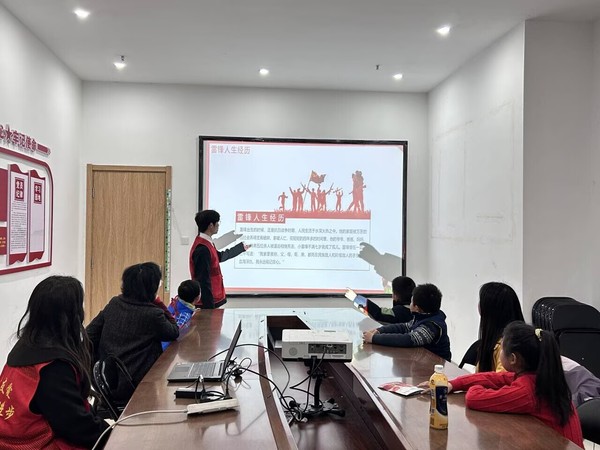 周六,志愿者用生动的语言和鲜活的事例还原了雷锋同志平凡而伟大的人生轨迹,结合新时代背景,志愿者们数字时代的雷锋精神为主题,给小朋友们播放了Q版动画《雷锋的一天》,以生动有趣的画面、通俗易懂的语言,再现雷锋同志助人为乐的感人事迹。观影过程中,孩子们被Q版雷锋的可爱形象深深吸引。随后,志愿者们创新开展“数字小老师”互动环节,通过角色扮演,让孩子们体验帮助“银发族”跨越数字鸿沟的成就感。孩子们耐心指导“老人”使用微信、支付宝等常用APP,展现了新时代少年的责任担当。下午,在志愿者的带领下,20余名社区儿童化身环保小卫士,开展社区环境清洁行动。志愿者们分组讲解垃圾分类知识带领小朋友们清理公共区域垃圾,分类投放可回收物