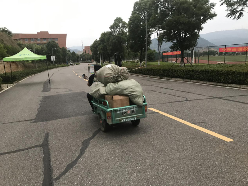 6月12日至20日,华体线上平台_华体online(中国)2020届毕业生陆续返回校园办理毕业手续。有的同学犯了愁:辛辛苦苦收拾了几大包行李,从宿舍搬到几百米外的学校门口,对女孩子来说,确实相当有难度。虽然校园巡逻车可以帮忙,可是汽车内部空间不大,有时还需要跑两三趟。