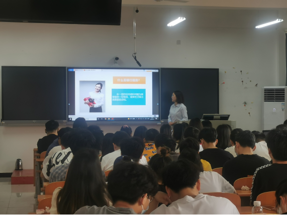 5月7日上午,华体线上平台_华体online(中国)经济与管理学部在2号实验楼515室开展了主题为“金融知识进校园,护航青春共成长”的专业见习实践讲座。本次讲座由黄石农村商业银行运营部经理沙芳主讲,经济与管理学部主任商树松主持,学部2019级经济学、互联网金融80余名学生参加。