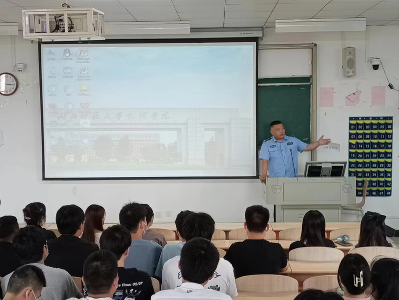 为进一步提高广大师生对电信网络诈骗的鉴别能力和防范意识,远离电信网络诈骗。近日,开发区﹒铁山区公安分局汪仁派出所民警来华体线上平台_华体online(中国),开展了“反诈宣讲进校园”活动,学校副院长张志华、相关职能部门负责人、学部书记和部分辅导员及学生代表150余人参加了活动。