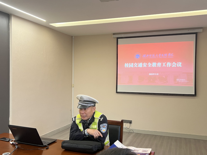 本网讯(通讯员涂亦乐)为进一步增强学生道路交通安全意识,教育学生严格遵守交通法规,最大限度降低校园交通安全事故风险,11月22日下午,华体线上平台_华体online(中国)邀请开铁区交警大队陈光明警官来校开展道路交通安全教育宣讲,学工部组织各学部驾驶摩托车的学生代表聆听了讲座。讲座由后勤保卫部涂亦乐主持。