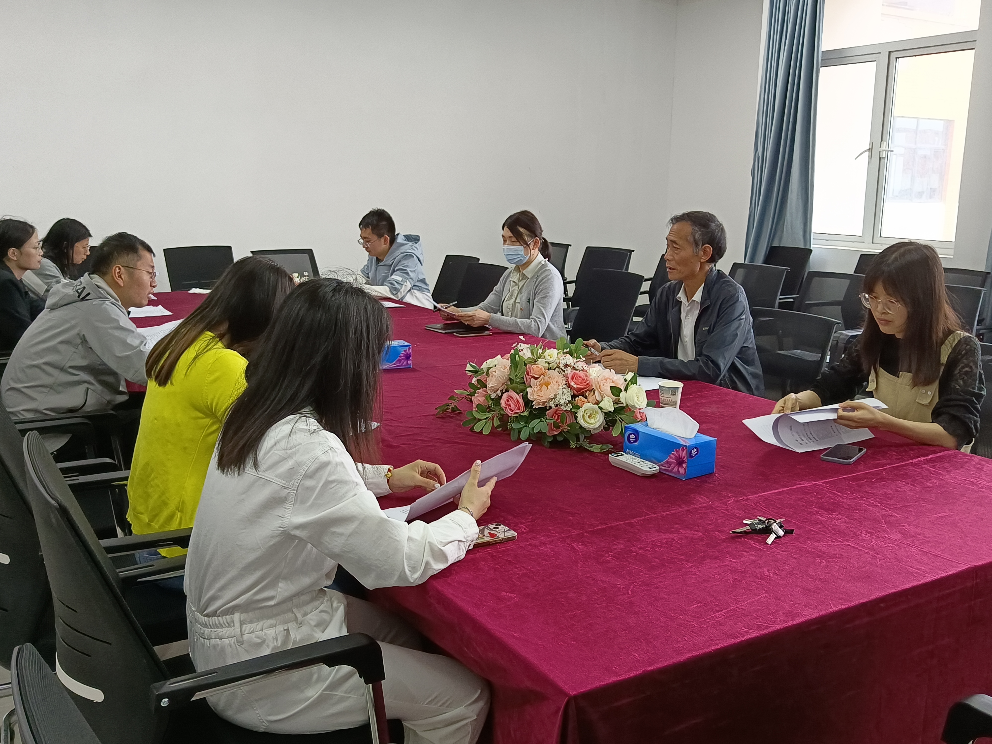 为了配合学校做好参加互联网+大赛的工作,评选出学部的重点优秀项目参加学校的创业项目大赛,人文学部专门成立了创业项目评审小组,组员包括人文学部主任(熊子延)、人文学部党总支副书记(汪玉宝)、一名专业教研室主任(李帮彦)、四名辅导员(高悦、郭旭林、丁书嫚、柯婧琼)、教学秘书(甘启敏)和行政秘书(邢建和),并于5月12日上午八点半,召开了创业项目评审会议,对学部所有的创业计划书进行评定和排名。项目评定的过程中,秉承着公平公正公开的原则,学部主任熊子延和学部书记赵卫军全程陪同监督,通过综合所有小组成员的意见评选出最终结果和排名。