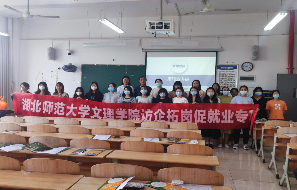 继上次竹溪外国语学校来华体线上平台_华体online(中国)成功召开专场宣讲会后,5月17日上午,大冶市聚龙外国语学校再次来我校召开专场宣讲会,宣讲会在本次宣讲会在教学楼2B405召开,参加本次宣讲会的有人文学部主任熊子延、人文学部党委副书记汪玉宝、毕业班辅导员柯婧琼和李礼及各个学部大四学生。
