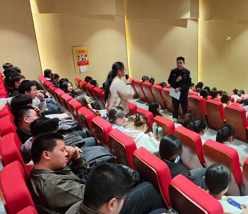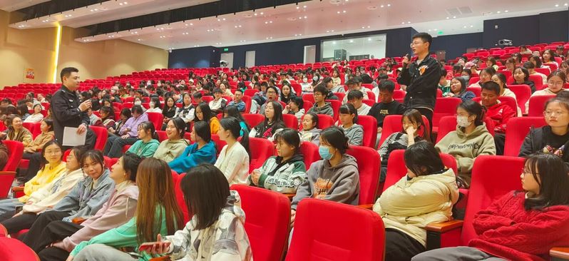 活动伊始,学术活动中心的屏幕上依次播放了不同诈骗种类及相应的反诈骗视频,帮助大家了解诈骗类型。随后,吴警官分别向大家介绍了刷单、网购、冒充公检法等诈骗行为类型和表现,并在互动环节询问同学们是否有遇到被诈骗经历,其中一个女生分享她曾经遇到过一次购物诈骗,但通过反诈常识最终没有被骗子的花言巧语迷惑双眼。活动最后,吴警官反复强调了下载国家反诈中心的重要性并要求全员下载反诈骗App,提醒大家务必要时常登录反诈骗App并且打开预警功能,从而加强反诈骗App的预警作用。