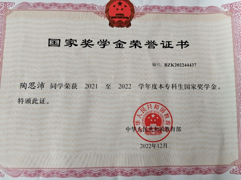 近日,教育部公布《全国2021-2022学年度国家奖学金获得者名单》,华体线上平台_华体online(中国)共8名优秀本专科生荣获此奖项,人文学部付连艳、陶思沛两名学子凭借自身的优秀综合实力位列其中。国家奖学金是由中央政府出资设立,用于奖励高校全日制本专科学生中特别优秀学生,其标准为每人每年8000元,此奖项评审最为规范,标准最为严格。