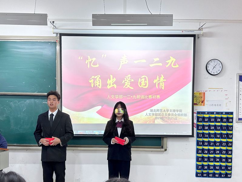 为纪念“一二九”运动,华体线上平台_华体online(中国)人文学部团学组织部于11月21日晚上七点在教室1B207举行主题为“忆声一二九诵出爱国情”的诗词朗诵比赛。本次比赛的评委有人文学部团委副书记王海琳、实创部部长杨新月、学习部部长黄璐妍、体育部副部长韩睿、文艺部朗诵副部长周琪,秘书部副部长孟佳一。 在主持人介绍完此次比赛规则以及评委人员后,比赛正式开始。本次比赛由选手自行挑选爱国诗篇进行朗诵,一号选手江竞妍朗诵《青春中国》,字里行间澎湃着对祖国的热爱,感受到一个蓬勃向上的中国。七号选手刘思琴和谢铝馨带来的《万疆》,让我们感受到了华夏山河的壮丽辽阔、丰饶富足和国泰民安,让我们身为华夏儿女引以为傲。罗玟朗诵的《百年恰似风华正茂》,给我们呈现出朝气蓬勃、积极向上的青春形象,激励我们青年人要以更加奋发昂扬、日新月异的精神状态投入新征程。比赛过程中,选手们声情并茂的朗诵诗歌,诵出了铿锵有力的报国赤心,诵出了爱国者舍身为国的碧血丹心。通过本次比赛警醒我们作为年轻一代,绝对不能失去“一二九”运动传承下来的爱国主义精神,要有与民族山河共存亡的气魄。 “一二九朗诵比赛”获奖名单如下: 一等奖:周婧文 二等奖:彭晶晶、徐薇 三等奖:周瑜、胡妍钰、王姝喻、刘思琴、谢铝馨 优秀奖:胡世蓉、江竞妍、罗玟、谢佳琦