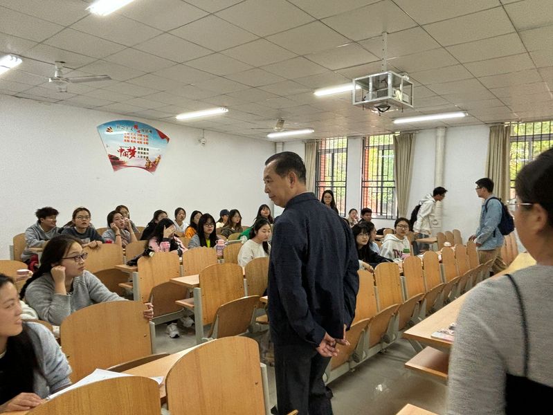 在检查过程中,人文学部周景斌书记对各班学生“手机入袋”情况以及“课前十分钟”活动的开展情况表示肯定:“同学们积极参与课前十分钟活动,课堂氛围活跃、形式多样。”