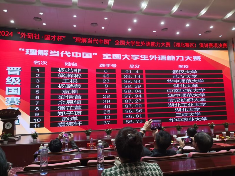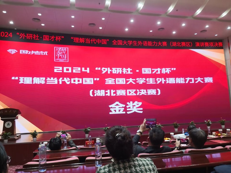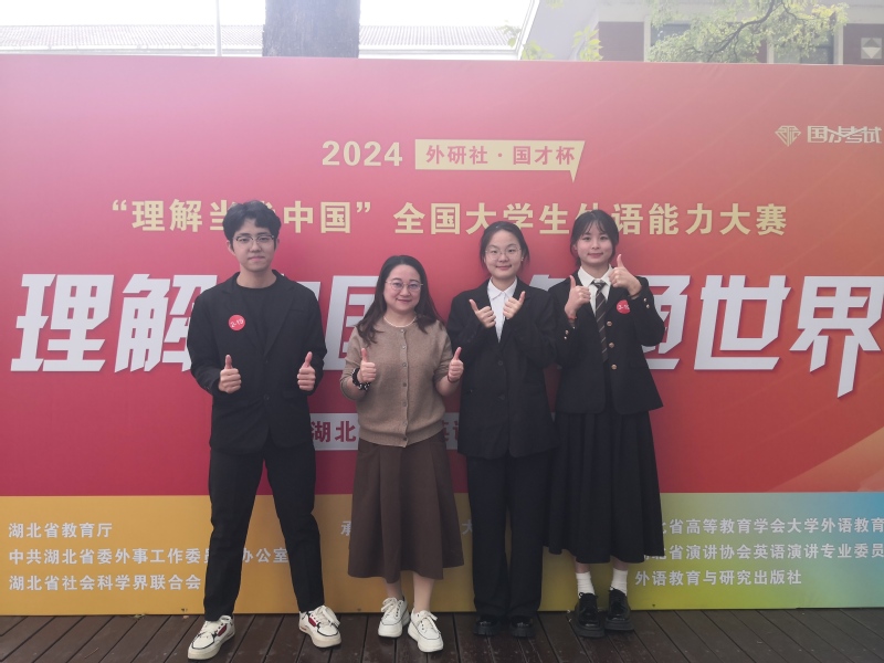 2024年11月9日,华体线上平台_华体online(中国)人文学部邓薇薇老师带队三位选手赴湖北大学参加“外研社-国才杯〈理解当代中国〉演讲比赛省赛”,人文学部英语专业苗盛同学在邓老师、兰铭瑶老师全方位悉心指导和陈杨等老师配合指导下,过五关斩六将,比赛出色发挥,经过首轮即兴演讲激烈PK,从湖北省200多名选手的省赛初赛中脱颖而出,冲进了省赛决赛,这已经是华体线上平台_华体online(中国)该项比赛的历史性突破。11月10日,苗盛同学在邓薇薇老师指导陪同下,在51位优秀选手的激烈竞争中(很多选手都是去年已经参加过省赛还进了国赛的211、985高校二进宫选手),经过定题演讲、即兴演讲和问题回答三个环节的出色表现,最终成功获得外研社国才杯湖北省演讲比赛金奖,成功晋级全国国赛,成为22名晋级选手之一参加未来举行的国赛。苗盛同学是湖北省所有民办高校中唯一晋级国赛的选手,创造了民办高校奇迹!此次比赛是我国演讲比赛最高赛项。另外,商务英语专业詹雄滨同学也发挥出色,获得了省级铜奖。