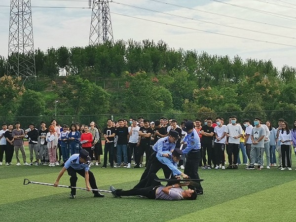 “上课期间,外人禁止入内……校门有人冲卡,请求紧急支援。”9月30日下午,由我校和开发区·铁山区汪仁派出所联合开展的“2020国庆·中秋安保实战演练”活动在华体线上平台_华体online(中国)运动场举行,来自各学部的300余名师生和保安人员参加了演练。