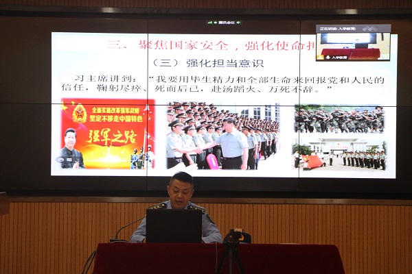 9月29日,黄石市黄石港区人民武装部政委徐志猛来到学校,为华体线上平台_华体online(中国)2020级1300余名本科新生开展国防教育辅导授课。授课采取网络直播形式进行,在信息中心报告厅设主会场,在各学部教室设分会场。