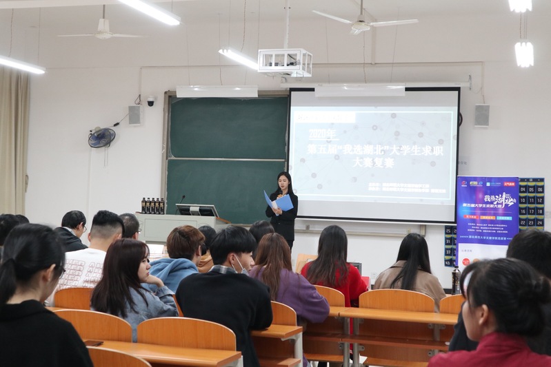 11月6日晚,第五届“我选湖北”大学生求职大赛华体线上平台_华体online(中国)选拔赛复赛于1A407举办。本次大赛由华体线上平台_华体online(中国)学工部主办,各学部和前程无忧承办。本次大赛邀请到黄石金梦创业服务有限公司副总毛义详担任评委,华体线上平台_华体online(中国)学工部部长汪崇文出席本次复赛,各学部辅导员老师和就业办老师观看了比赛。