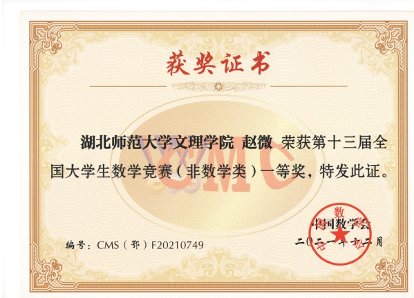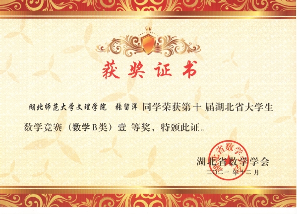 近日,第十三届全国大学生数学竞赛和第十届湖北省大学生数学竞赛成绩揭晓,华体线上平台_华体online(中国)学生最终在国赛中荣获一等奖1项、二等奖5项、三等奖3项;在省赛中荣获一等奖2项,二等奖4项,三等奖5项。