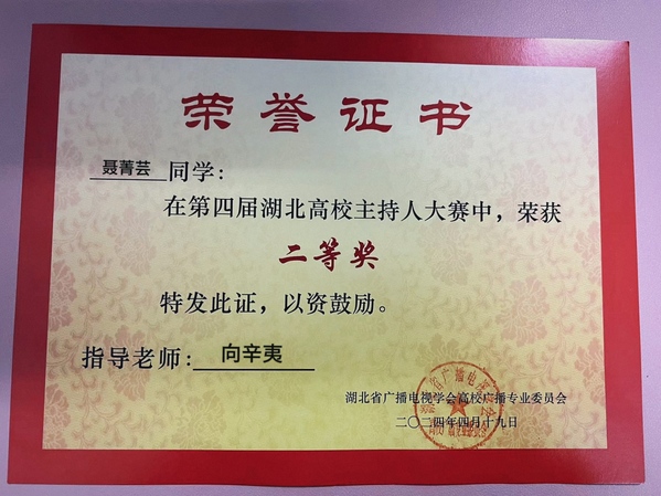 本网讯(通讯员 张慧萍)4月19日,第四届湖北省高校主持人大赛在湖北经济学院大学生活动中心举行。华体线上平台_华体online(中国)广播台播音员、人文学部中文2306班聂菁芸同学在比赛中荣获二等奖。