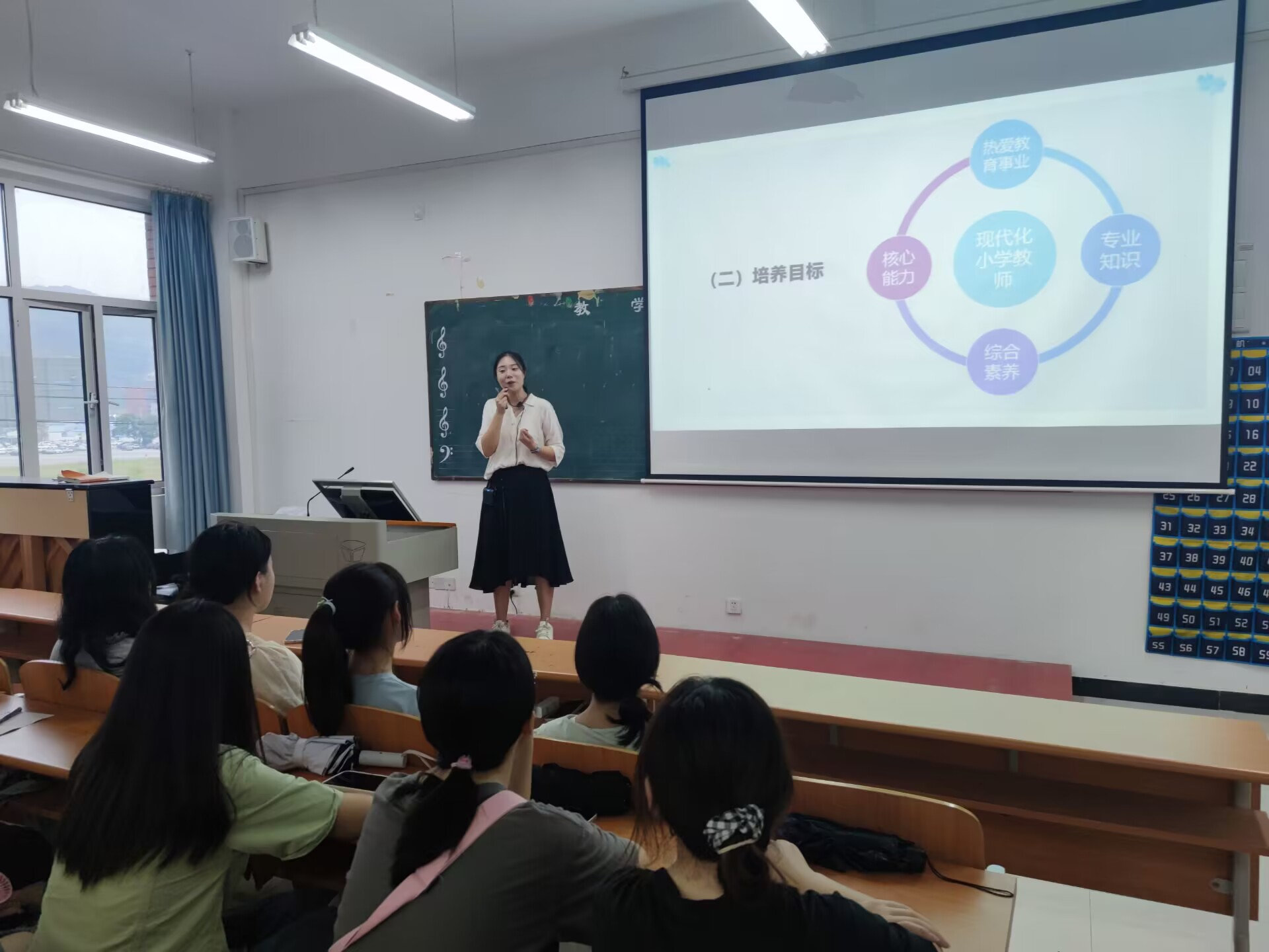 讲座环节中,美术类专业由学科负责人徐俊超、小学教育由学科负责人王晓晶、音乐类专业由学科负责人陈依恒,学前教育专业由学科负责人李璐四位老师主讲专业老师介绍了专业的历史沿革、师资力量、课程设置实践培养就业前景等方面的情况,强调了各专业的核心理念和培养目标向新生提出了宝贵的建议,勉励新生们珍惜大学时光,努力学习,提高自身的专业素养