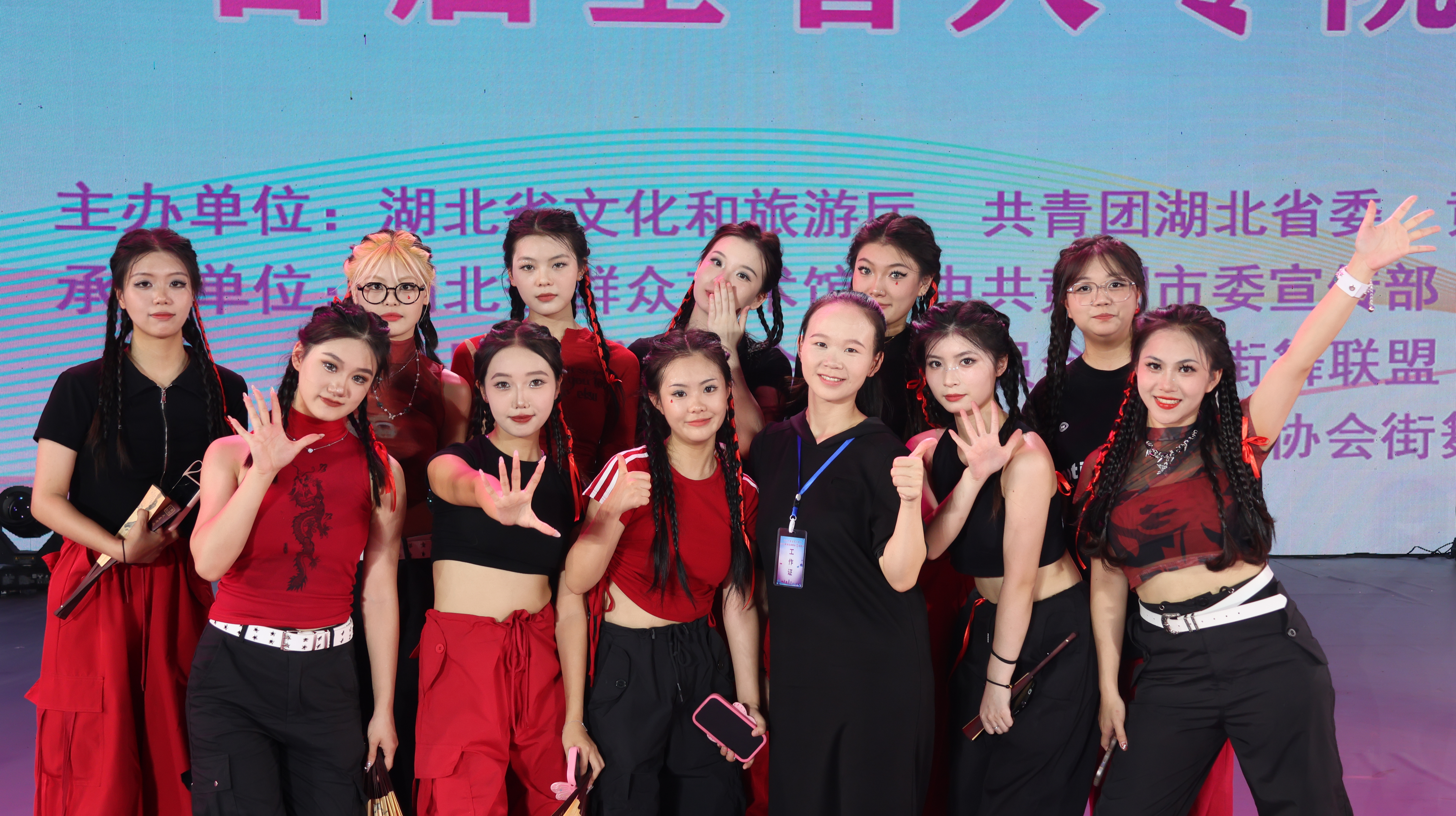 2023年9月10日,湖北省首届全省大专院校街舞大赛在黄冈市遗爱湖公园举办。此次大赛由湖北省文化和旅游厅、共青团湖北省委和黄冈市人民政府主办,全省40余所高校的学生参加。我部胡万丽老师带领舞蹈社,经过层层筛选,指导的舞蹈节目《weapon》成功入围决赛,并在决赛中荣获三等奖。